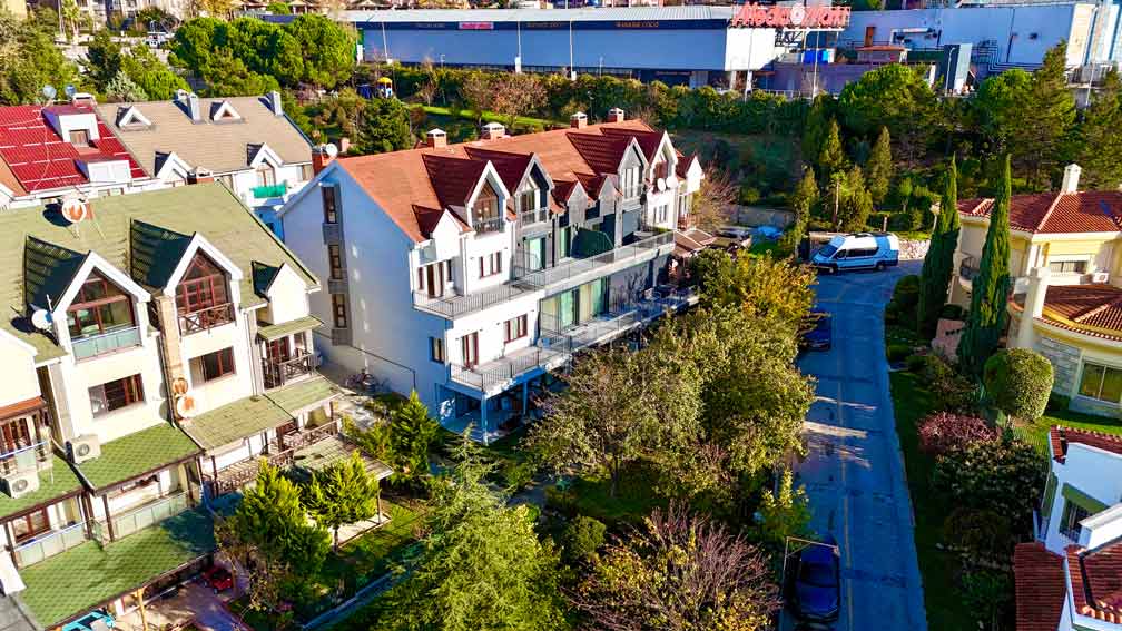 Ephesus Villas is an exclusive development of 72 four‑storey villas (mainly 5+2 layouts) in central Bahçeşehir. Residents enjoy two outdoor swimming pools, a children’s playground, basketball court, sports facilities, a café and an open‑air parking area. The villa has two private parking spaces plus guest parking. A 24‑hour security team and controlled entry points ensure peace of mind. 3M Migros, Media Markt, the post office (PTT), municipal services, public transport stops and Bahçeşehir’s Bankalar Avenue are all within walking distance.